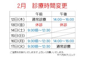 2月診療時間変更